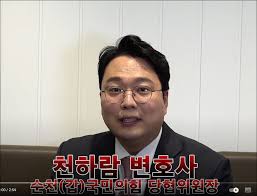 천하람은 법조인 출신으로서 정치에 입문해 국민의힘과 미래통합당을 거쳐 현재 개혁신당에서 활동하고 있다. 2020년 제21대 국회의원 선거 당시 전남 순천·광양·곡성·구례 갑 지역구에 미래통합당 후보로 출마했지만 3.02% 득표율로 낙선했다. 이후 2024년 제22대 국회의원 선거에서는 개혁신당 비례대표로 출마해 3.61% 득표율로 당선되며 정치적 입지를 다졌다. 비록 지역 연고가 없었음에도 불구하고 전라남도 순천을 중심으로 활발한 정치 활동을 펼치며, 가족과 장인·장모까지 순천에 이주시키는 등 지역에 뿌리를 내리고 있다. 본인은 처음에 자신이 흔한 대구 출신 보수 정치인과 다르지 않다고 자평했지만, 호남 지역 정치 진출을 통해 자신만의 독특한 길을 개척하고 있다.