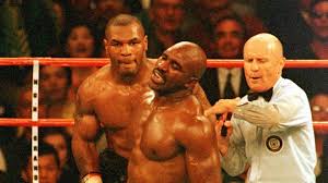 감옥에서 출소한 후, 타이슨은 1995년에 복싱계로 복귀하며 다시 한 번 챔피언 자리를 노렸다. 1996년, 타이슨은 프랭크 브루노를 TKO로 제압하며 WBA 챔피언 자리를 되찾았고, 이어진 방어전에서도 승리를 거두었다. 그러나 타이슨의 복귀는 순탄치 않았다. 1997년, 타이슨은 에반더 홀리필드와의 리매치에서 참담한 사건을 일으켰다.